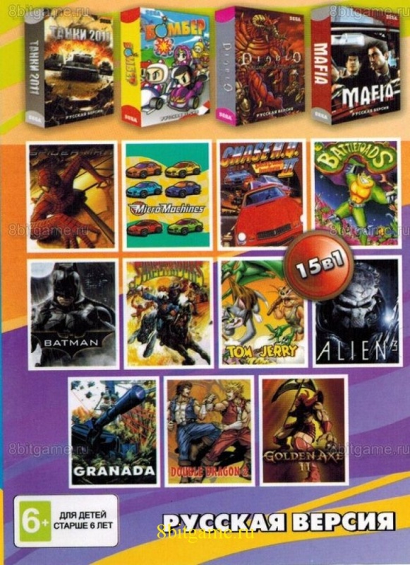 --купить Сборник 15в1 A-1501 ТАНКИ 2011 / MAFIA / DIABLO / BOMBER для Сега,Sega.Игры для PS5Игры для Xbox OneИгры для Nintendo DSИгры для Playstation 4Игры для Xbox 360Игры (картриджи) для Game BoyИгры для Playstation 3Игры для Xbox OriginalGame Boy ColorИгры для Playstation 2Игры для Nintendo Switch 2Игры для Game CubeИгры для Playstation 1Игры для Nintendo SwitchКартриджи для Super NintendoИгры для PS VitaИгры для Nintendo Wii UИгры для приставок 8-битИгры для PSPИгры для Nintendo WiiИгры(картриджи) для Sega 16 bitИгры для PC/ПКИгры для Nintendo 3DSИгры для разных ретро платформ