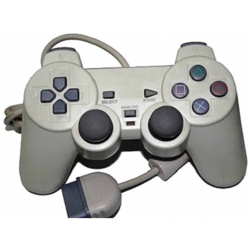Стандартный проводной аналоговый джойстик для приставки PS One. Выполнен из пластика светло-серого цвета, имеется функция вибрации. Высокая чувствительность кнопок и рукояток.Характеристики