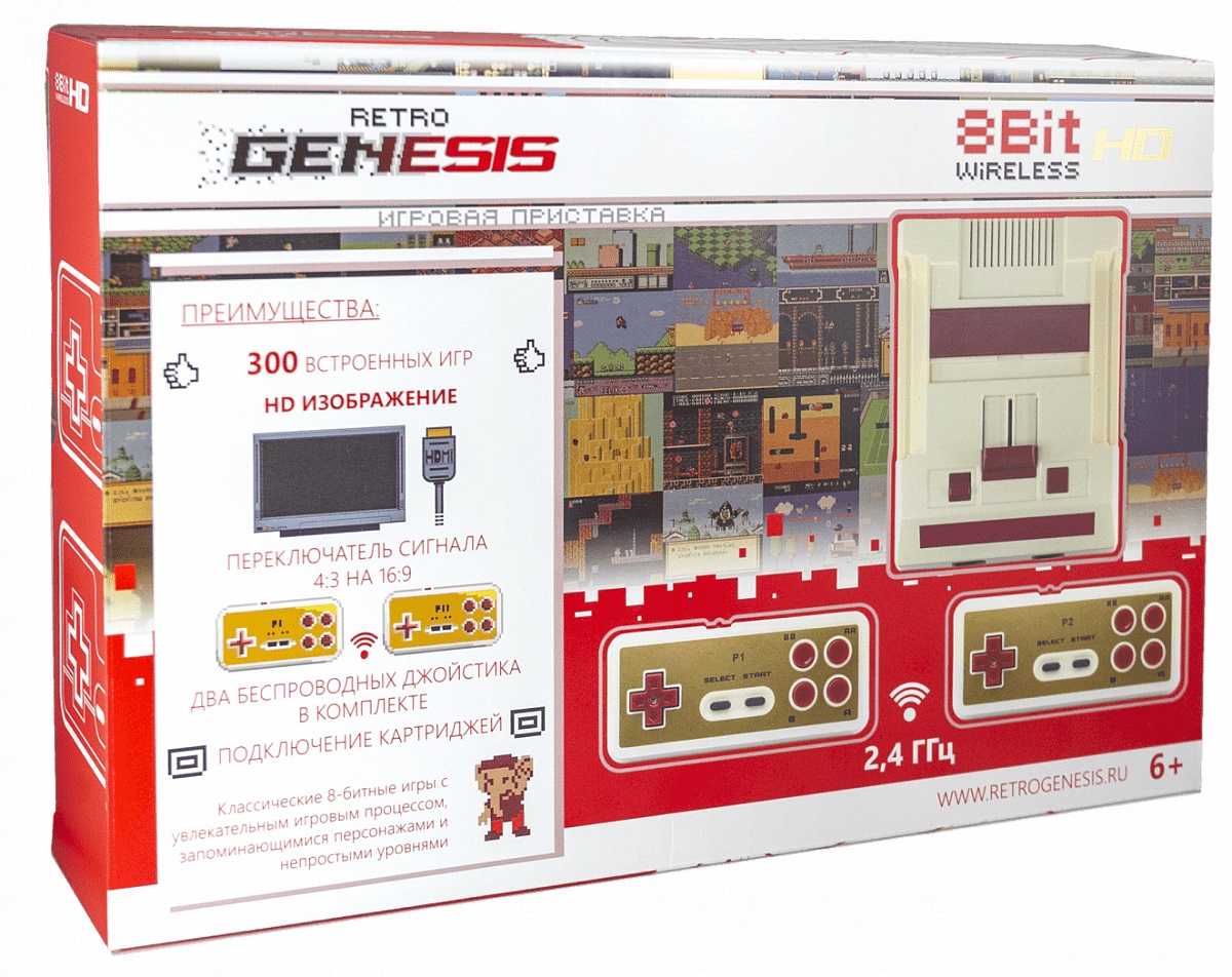Retro Genesis 8 Bit HD Wireless + 300 игр (HDMI кабель, 2 беспроводных джойстика)